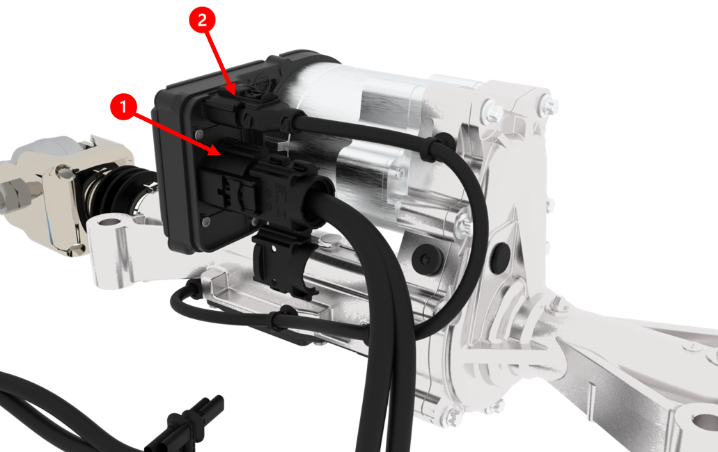 | 1. Primary Power, Public and Private Communication (X0436) 2. Secondary Private CAN (X0435) 3. Secondary Power Connection (X0437) 4. Handwheel Angle Sensor (X0432) |