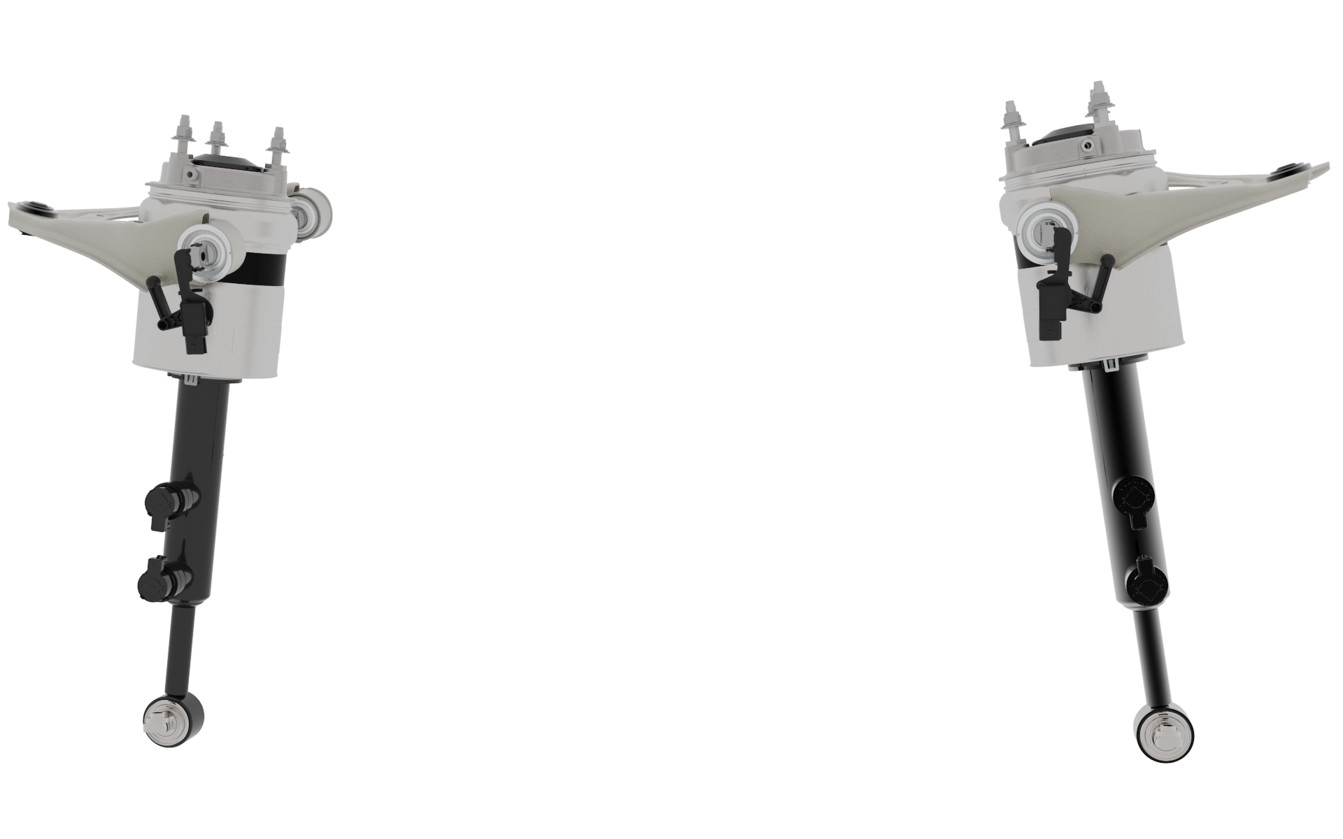 There are four air spring modules on Cybertruck, one located at each corner of the vehicle. The top mount casting is rigidly mounted to the vehicle body, the lower mount is connected through a bar pin on the lower control arm.