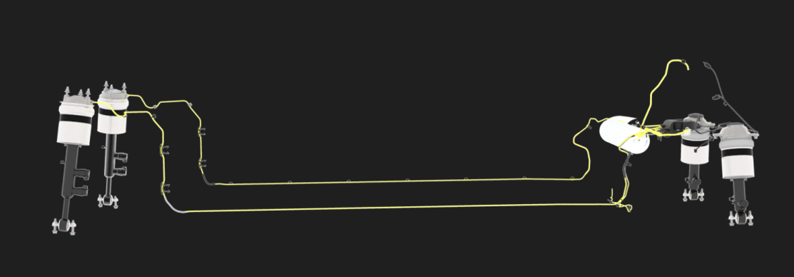 All air lines are replaceable. The front right and left air spring lines are difficult to fully remove since they run alongside the battery pack inside the body. In the case of air line damage, refer to the Service Manual for instructions and guidelines on performing a splice repair.