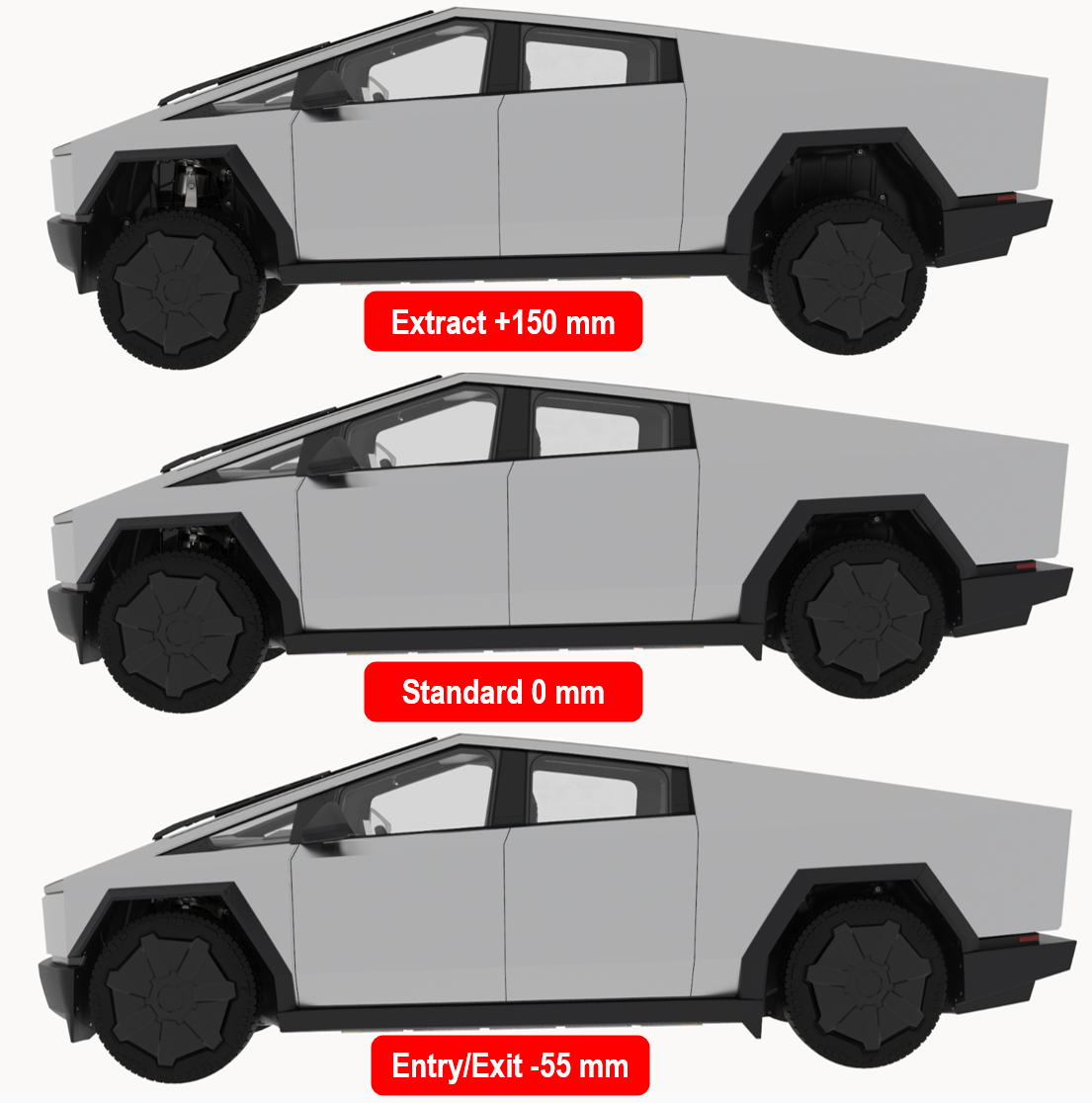 Cybertruck uses a mode-based approach to ride heights rather than a simple height slider as Model S and Model X use.