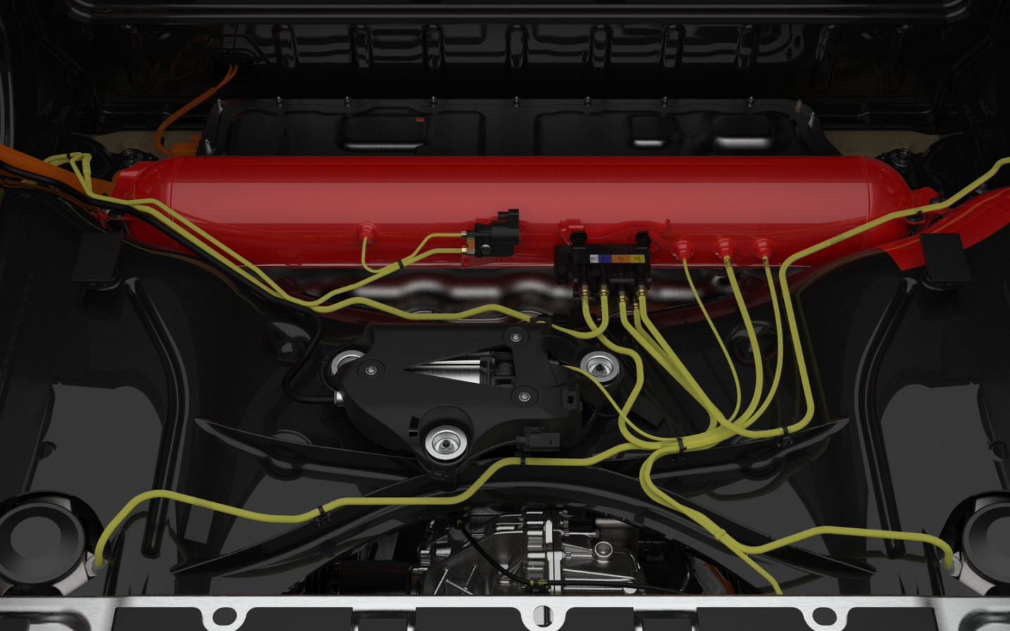 The Reservoir to Valve Block, Valve Block to Ancillary, and Ancillary to High Voltage Battery air lines enable Pressurized Pack functionality.