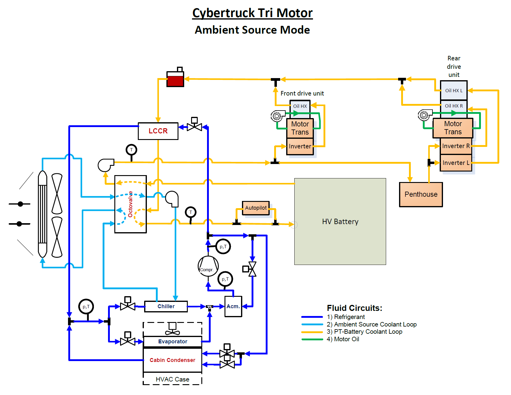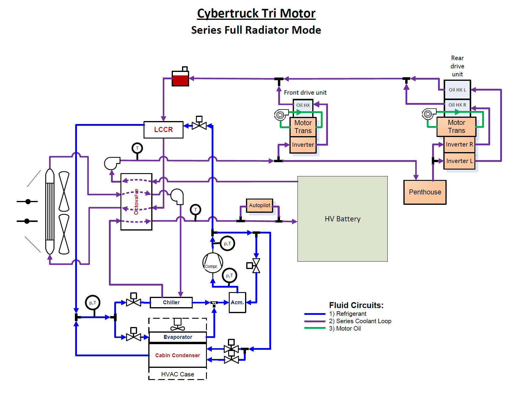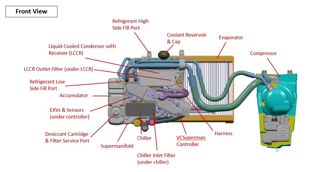 The following diagrams show the layout of the Cybertruck heat pump system and the related components. Each component is described in further detail.