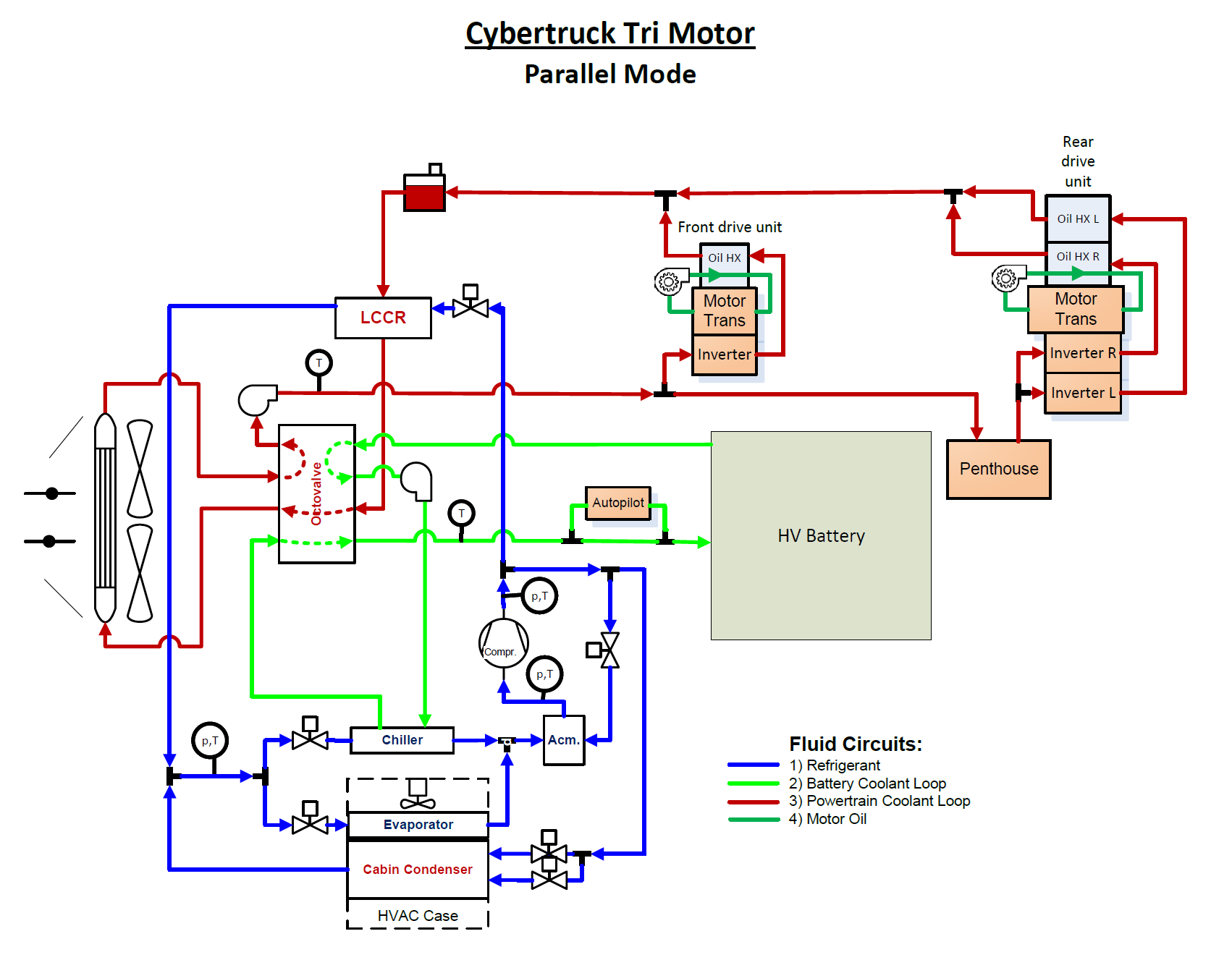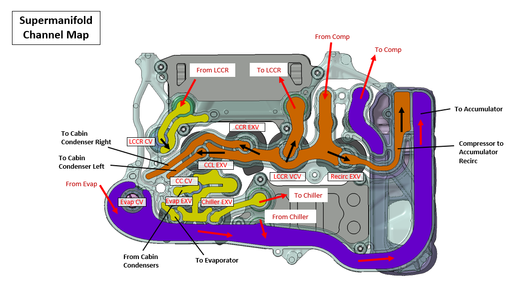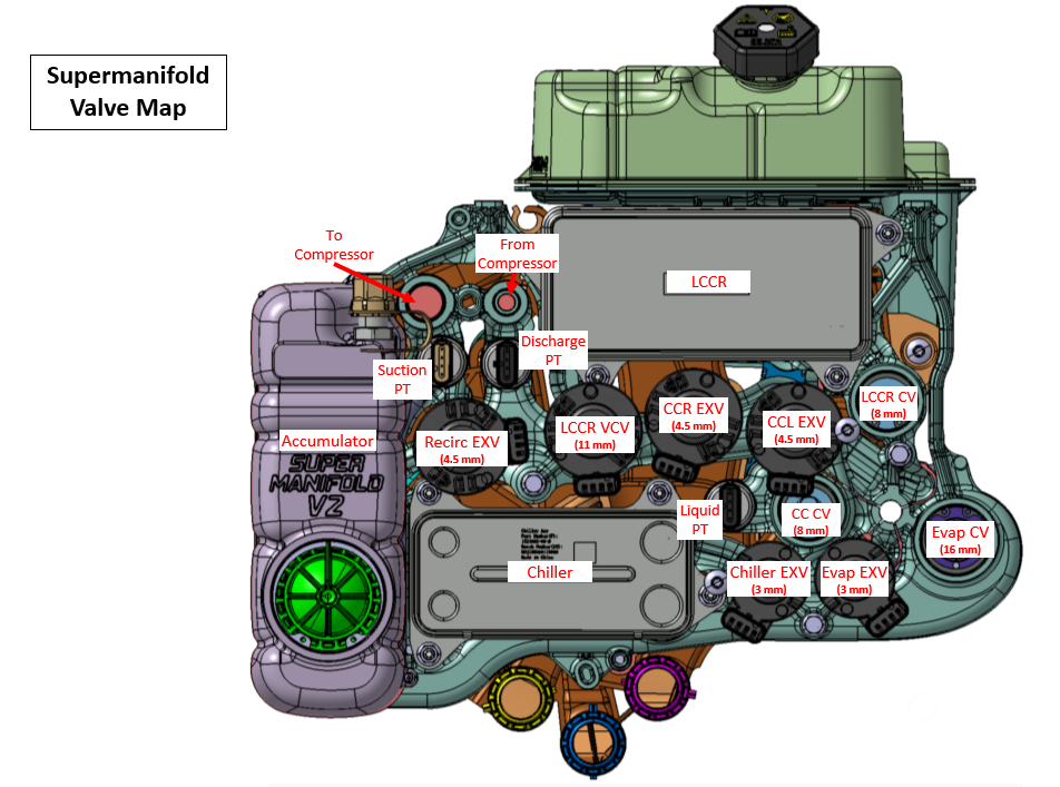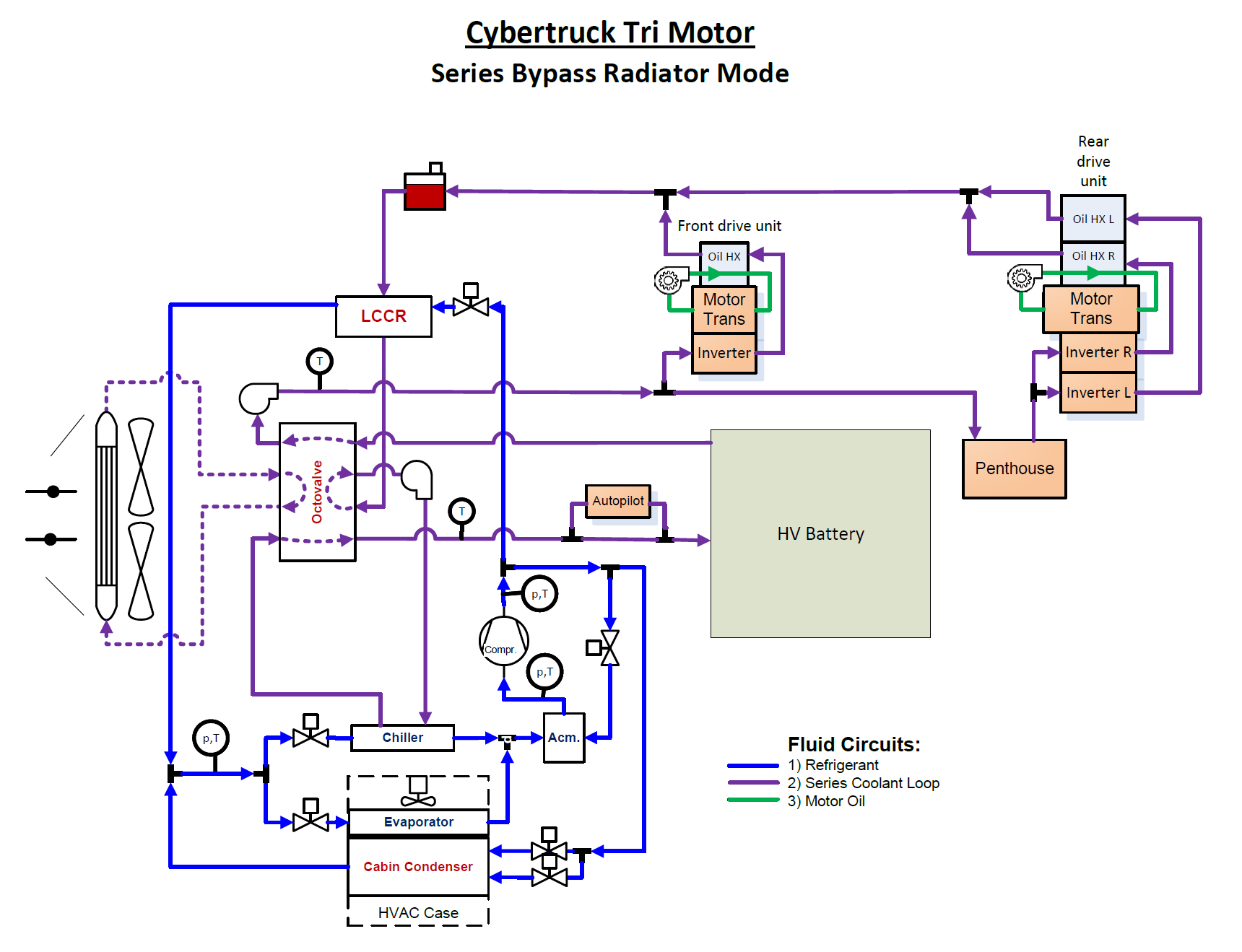 The following diagrams show the layout of the Cybertruck heat pump system and the related components. Each component is described in further detail.