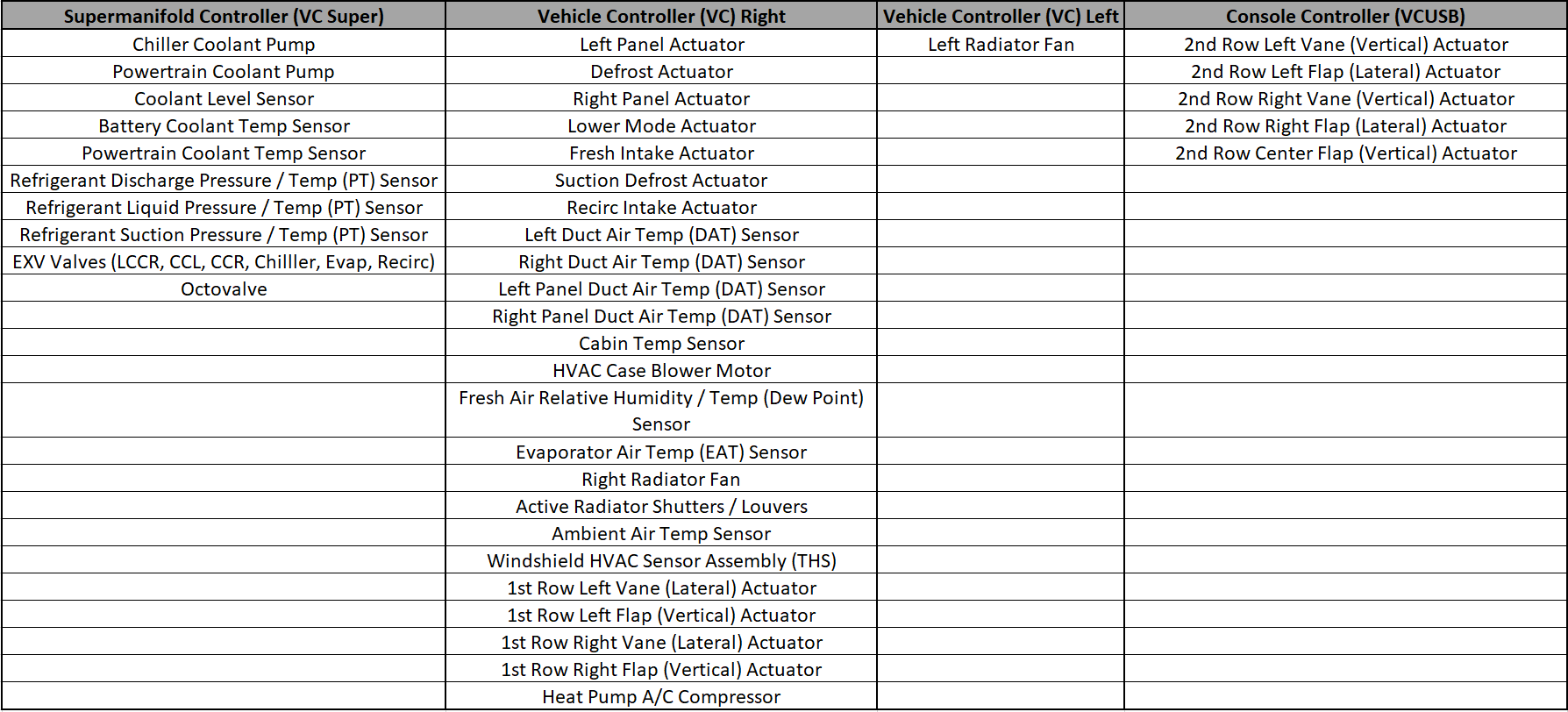 - Actuators (Defrost, Right Panel, Left Panel, Lower mode)