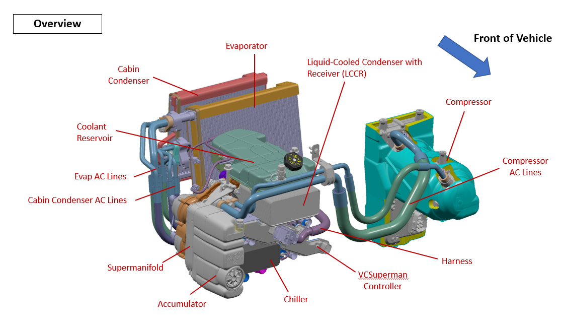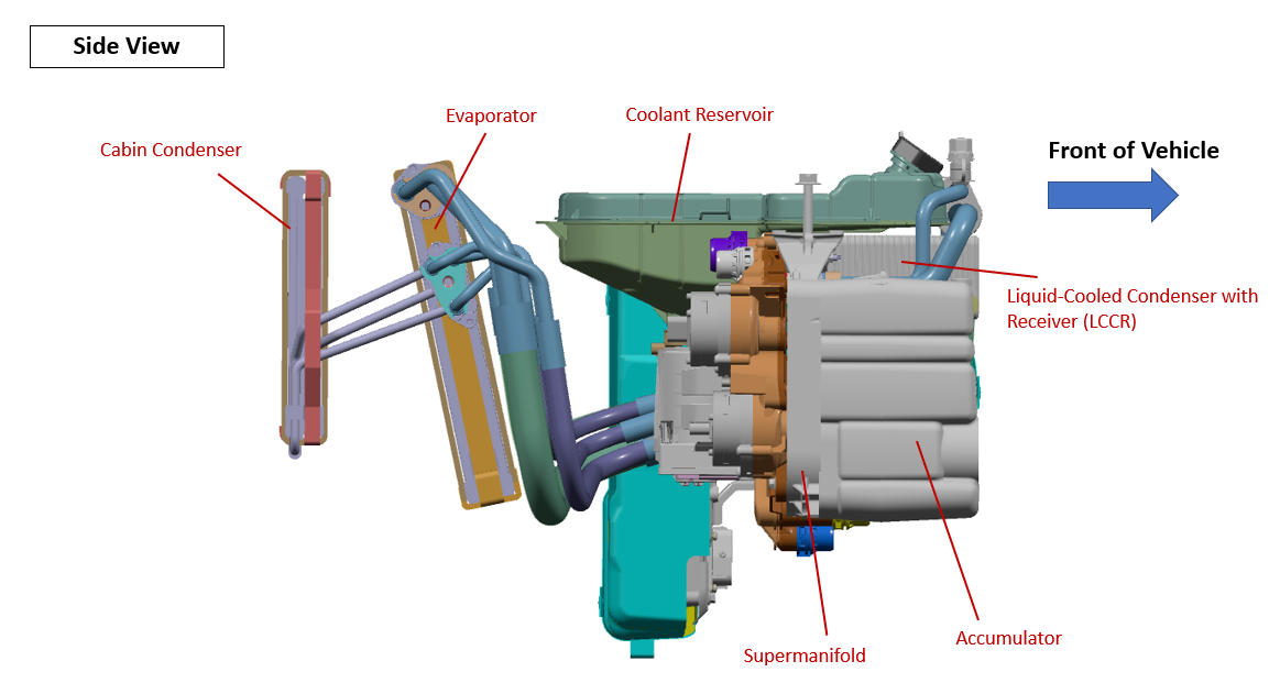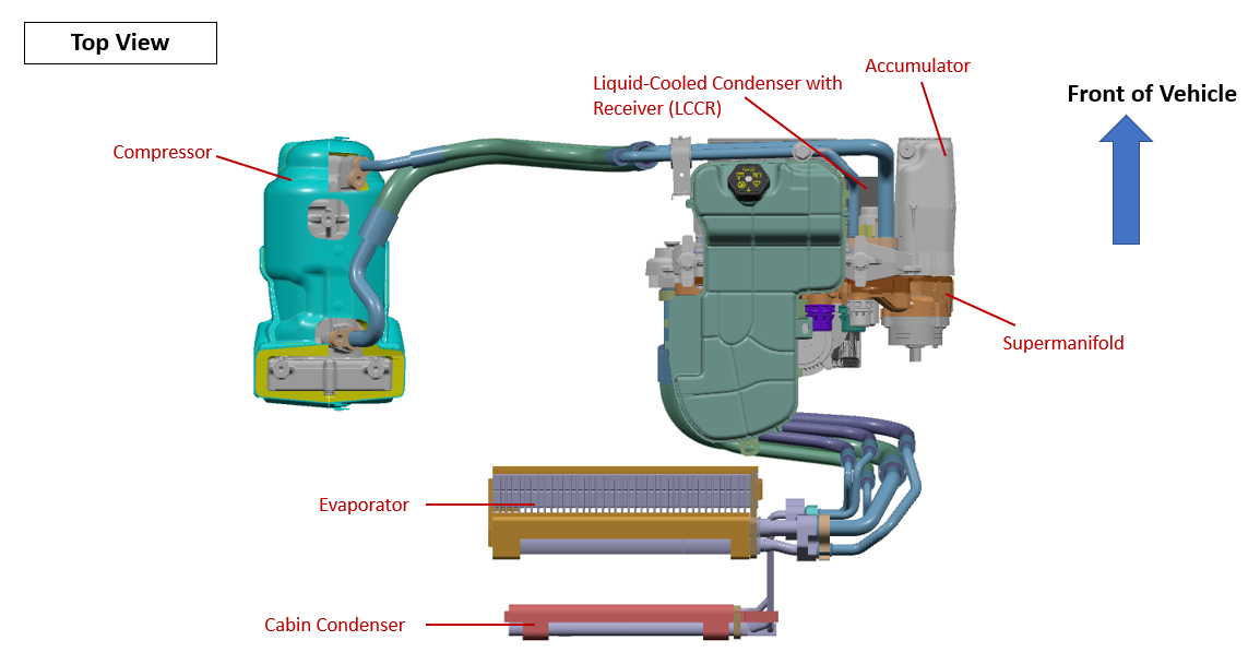 - Ambient Source Mode allows heat from ambient air via the powertrain radiator to be rejected to the chiller for heat pump cabin heating.