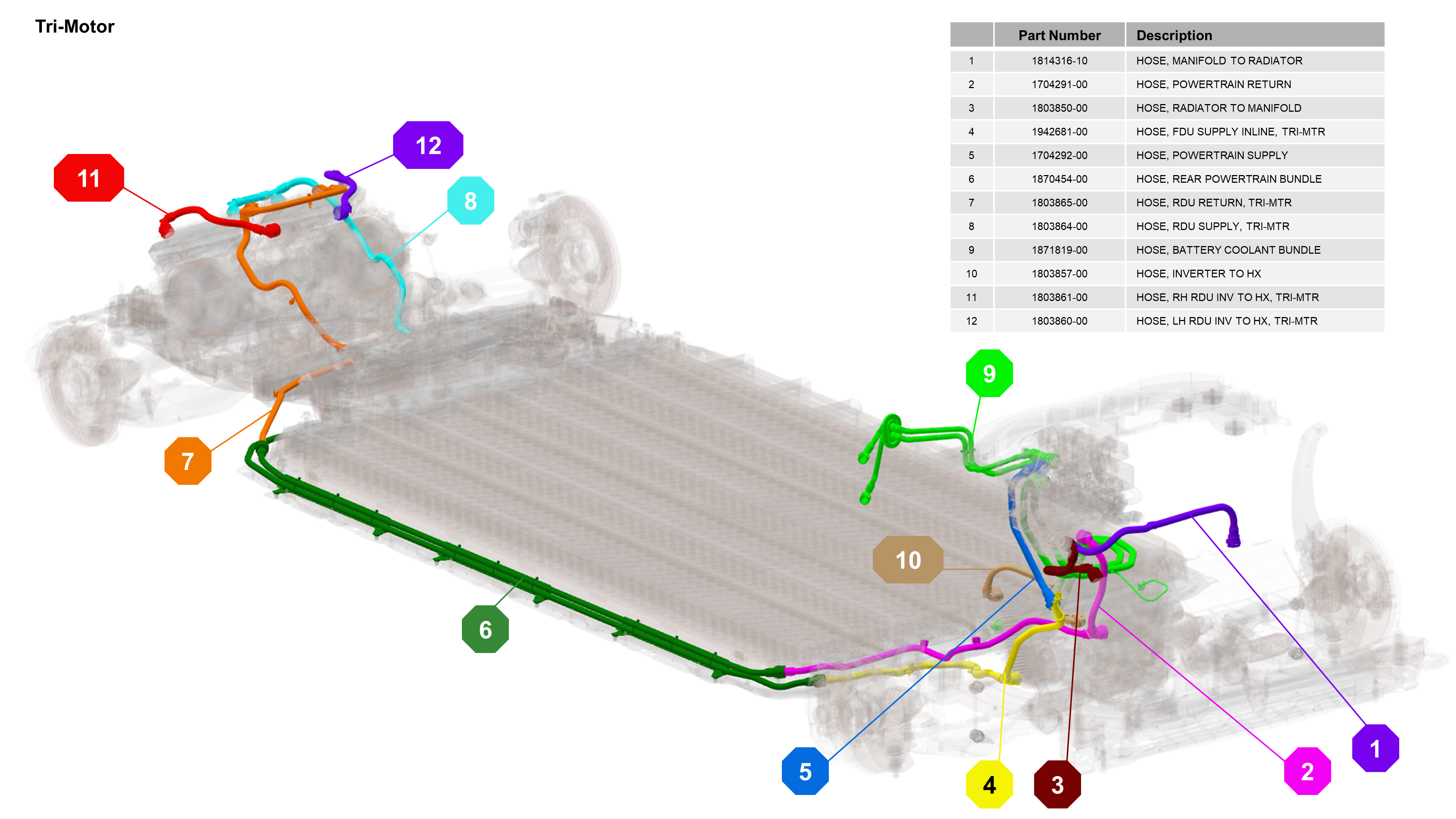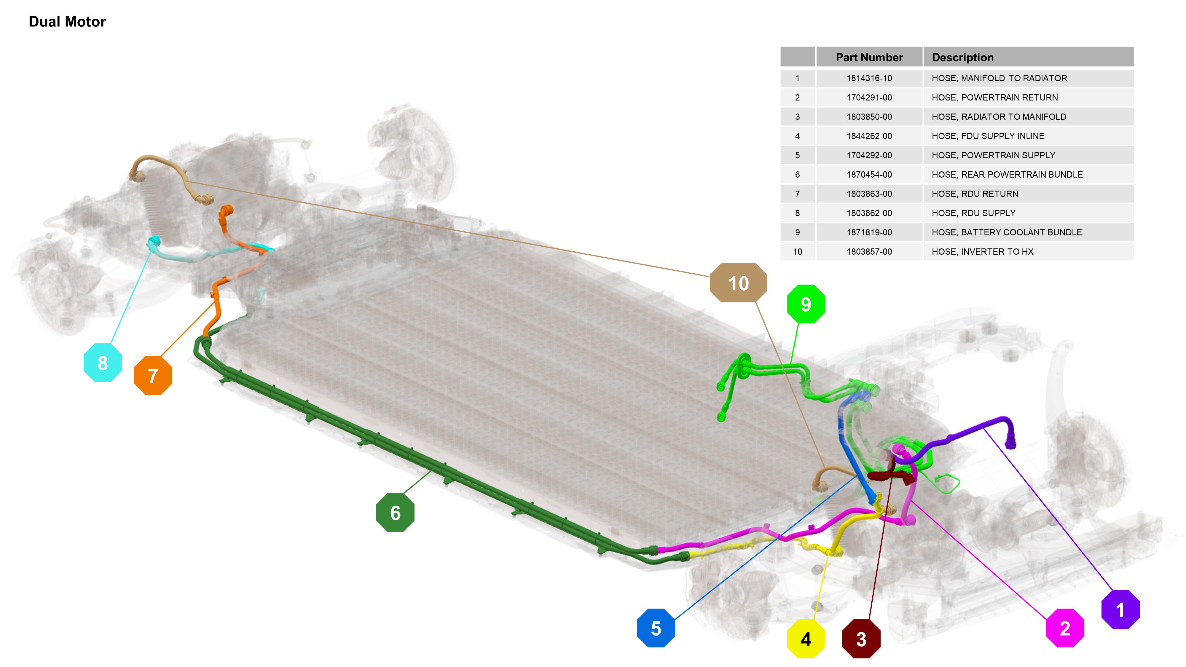 Cybertruck is available in Dual Motor or Tri Motor configurations. The coolant loop configurations are similar for both, except the Tri Motor configuration has 2 rear drive units connected in parallel with the front drive unit, while the Dual Motor configuration only has 1 rear drive unit connected in series with the front drive unit.