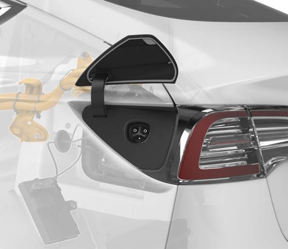 The charge port is located next to the left-hand tail light, which hides the charge inlet when the charge port door is closed.