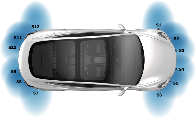 | Ultrasonic sensors | 12 ultrasonic sensors (Bosch) | 12 ultrasonic sensors (Valeo) | 12 ultrasonic sensors (Valeo) |