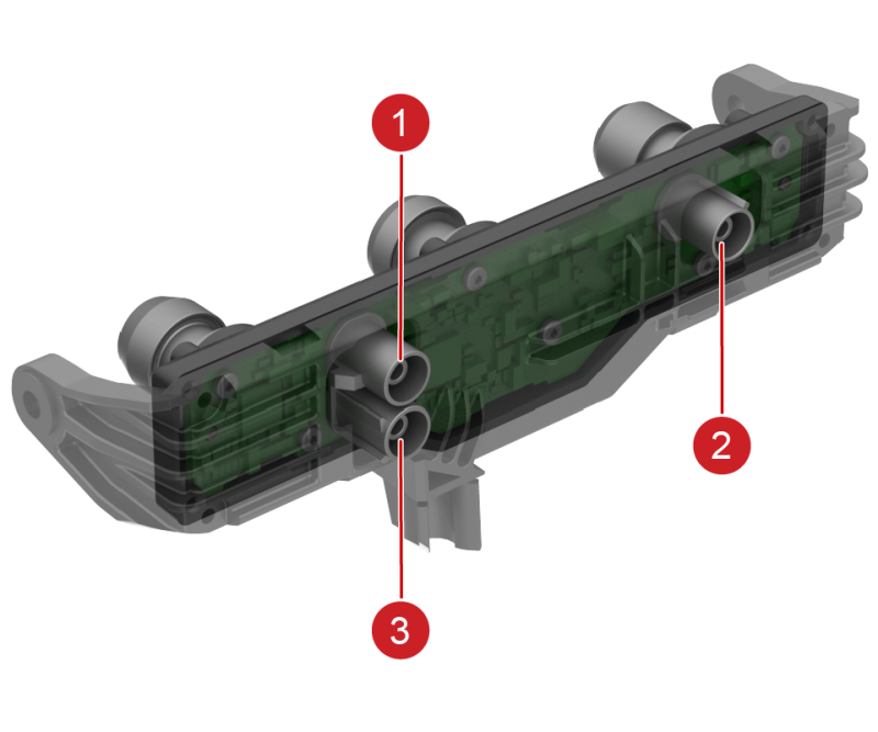 | 1. Narrow camera connector 2. Main camera connector 3. Fisheye camera connector |