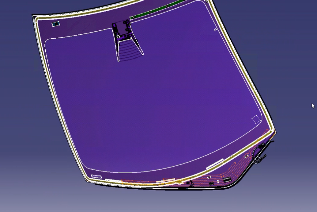 | Above is the windshield with the wires of the heated wiper grid highlighted |
