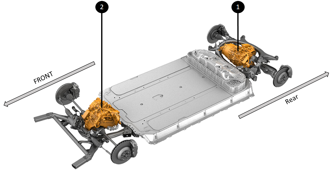 | 1. Rear Drive Unit 2. Front Drive unit (Dual Motor configuration only) |