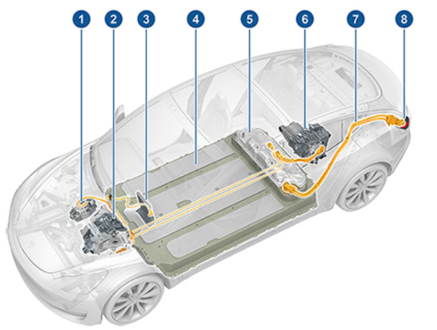 The HV distribution architecture is influence by the powertrain configuration of the vehicle. Model 3 offers Rear Wheel Drive (RWD) and All Wheel Drive (AWD) / Dual Motor configurations.