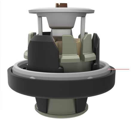 Once the ring is dissolved, it frees plastic tabs from stopping the valve to come down. The pointy shape of the tabs and the spring force on the valve will cause the valve to spread the plastic tabs and the valve will move down from the spring force.