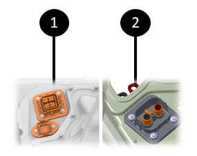 | 1. Slide-in connector charge inlet - Model 3 vehicles built up to late 2020 2. Charge port inlet bus bar or bolted style - Model Y and Model 3 vehicles built in late 2020 and later |