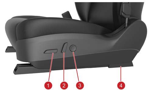 | 1. Seat cushion button 2. Recliner button 3. Lumbar button 4. Track cover |