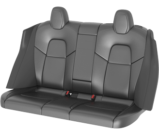 The Model 3 has a standard five person seating capacity with a driver and passenger seat in the front row and a three passenger bench seat with fold-flat backrests in the rear. All seats are designed, engineered, and manufactured by Tesla.