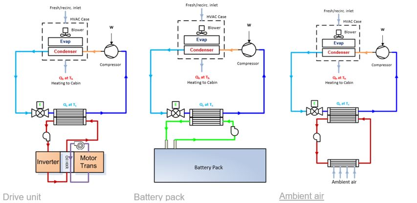 All 3 of these heat sources require heat transfer to the refrigerant using the vehicle coolant loop.