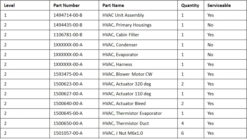 HVAC Case – Service Part Numberslink