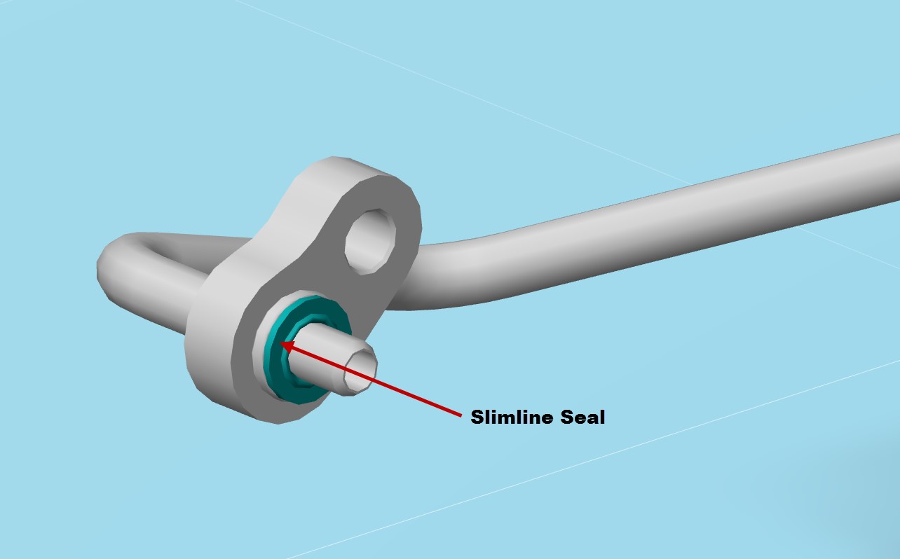 All A/C line connection use Slimline style seals, which are only designed for one time use. If the connection is opened, the Slimline seal should be replaced. Model 3 uses three different sizes of Slimline seals throughout the A/C system.