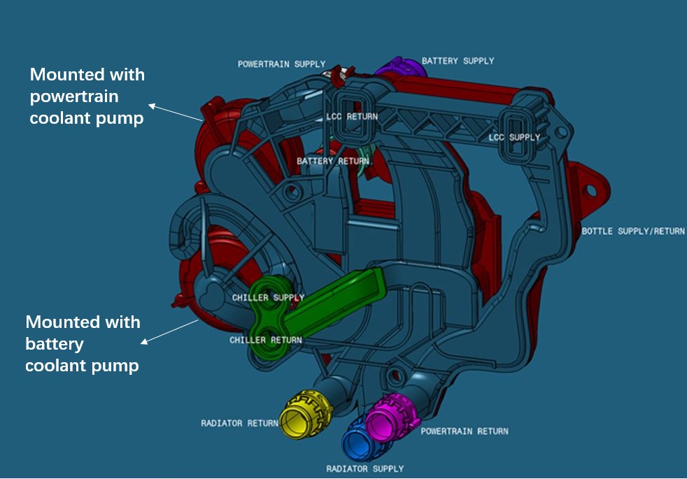 Model 3 uses one battery coolant pump and one powertrain pump. Both pumps are integrated into the supermanifold and are serviceable items.