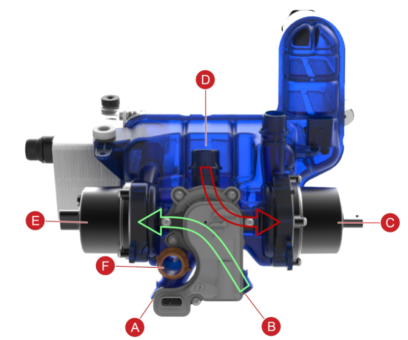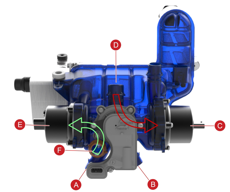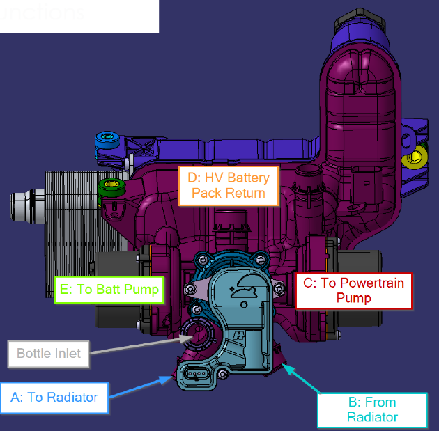 Using the 5-Way valve, the vehicle thermal system can switch between modes of coolant routing. The system automatically implements the most appropriate mode according to the prevailing conditions.