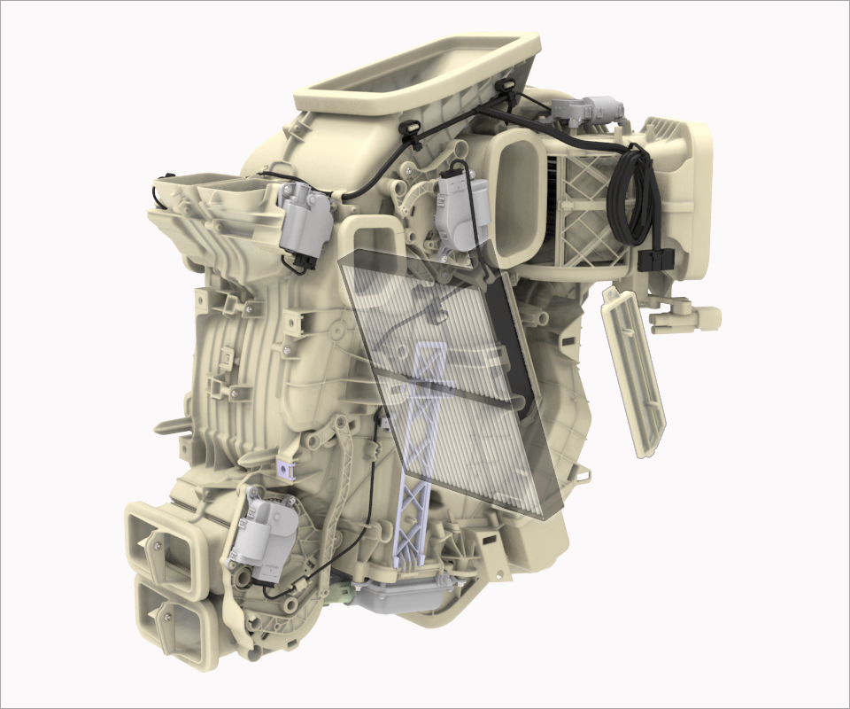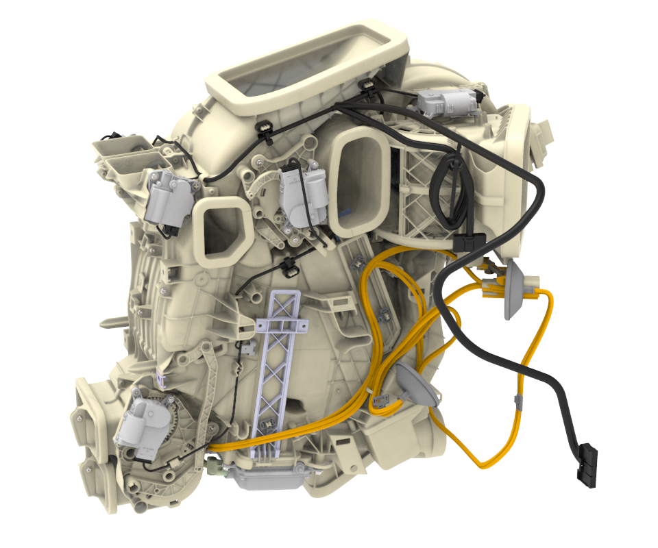 PTC cabin heater replacement requires the access panel to be cut away from the HVAC case. Refer to the Service Manual for replacement details. Replacement PTC cabin heaters should come with a service cover and cover fasteners to capture the replacement heater after installation.