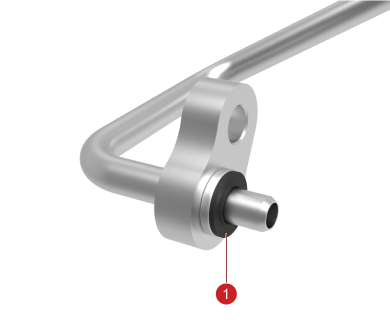Schrader valves in the service ports on the refrigerant lines provide connection points for equipment used to charge / evacuate the system for servicing purposes. The connections are standard couplers for R134a or R1234yf refrigerant. Each refrigerant type requires a unique port size and associated coupler. Both service ports are fitted with a screw-on cap to prevent refrigerant from leaking through the valves and to prevent dirt from entering the service port.