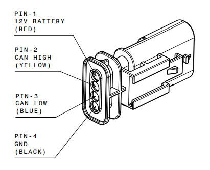 The compressor has two connectors, one for low voltage and one for high voltage. Communication with the Vehicle Controller (VC) Front is via 500K CAN bus. The low voltage connector is a four-pin connector. The signal / wires used are 12V Power, Ground, CAN (+), and CAN (-).