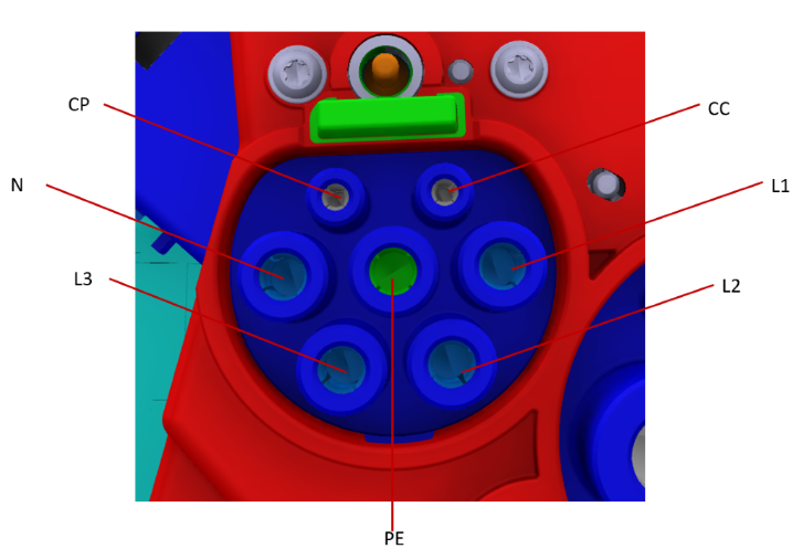 | 1. L1/L2/L3: AC Current 2. N: Neutral 3. PE: Grounding 4. CC: Charging Confirm (Proximity) 5. CP: Charging Pilot |