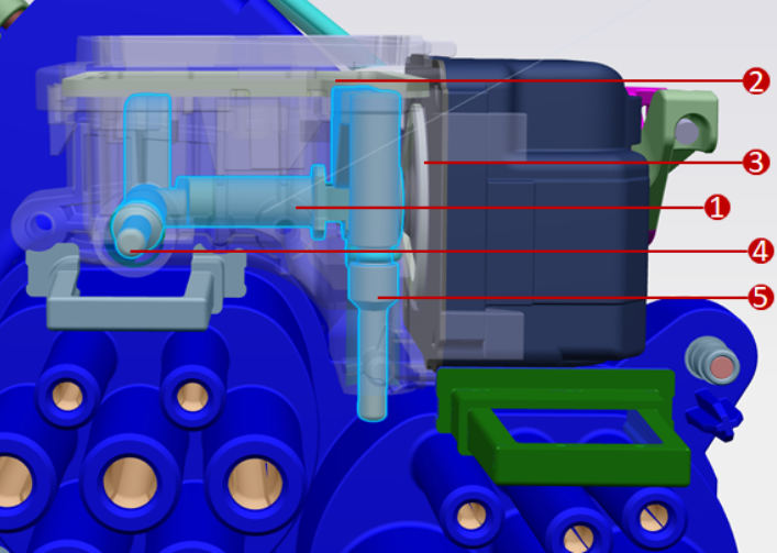 The charge port latch locks the charge handle in place when charging and current is flowing to prevent live disconnect. The charge port latch is actuated by a cam for converting rotational movement into linear movement. The below picture shows an overall view from Latch Actuator going through Release Cable, Latch Actuator, Latch Housing to motivate AC/DC Latch pin, and further from Latch Release Handle if the latch is engaged/disengaged manually.