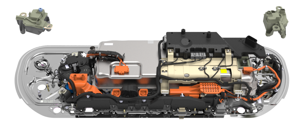 The pyro-disconnect is a standalone device able to interrupt the high voltage loop on the HV battery side of packs contactors.