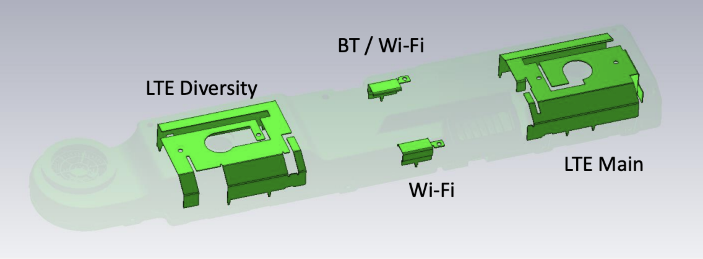 - Cast Aluminum heat sink is used for LTE modem and Wi-Fi / BT modules.