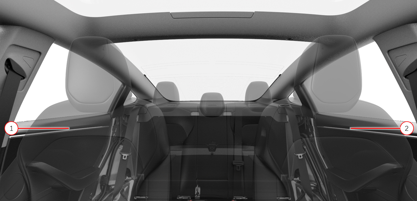 There is a press-laminated headliner on the 2024+ Model 3. Map lights are located in the front overhead module and the rear section of the headliner, illuminate when the light is touched, or when the doors open. A customer can disable map lights illuminating automatically from the touchscreen. The front and the new isolated second row headliner map lights are with capacitive touch activation.