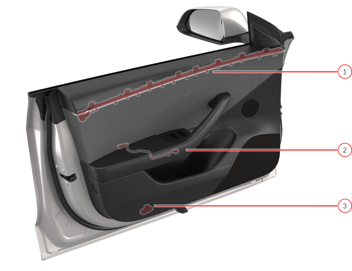 | 1. Decor ambient lighting 2. Map pocket ambient lighting 3. Puddle lamp |