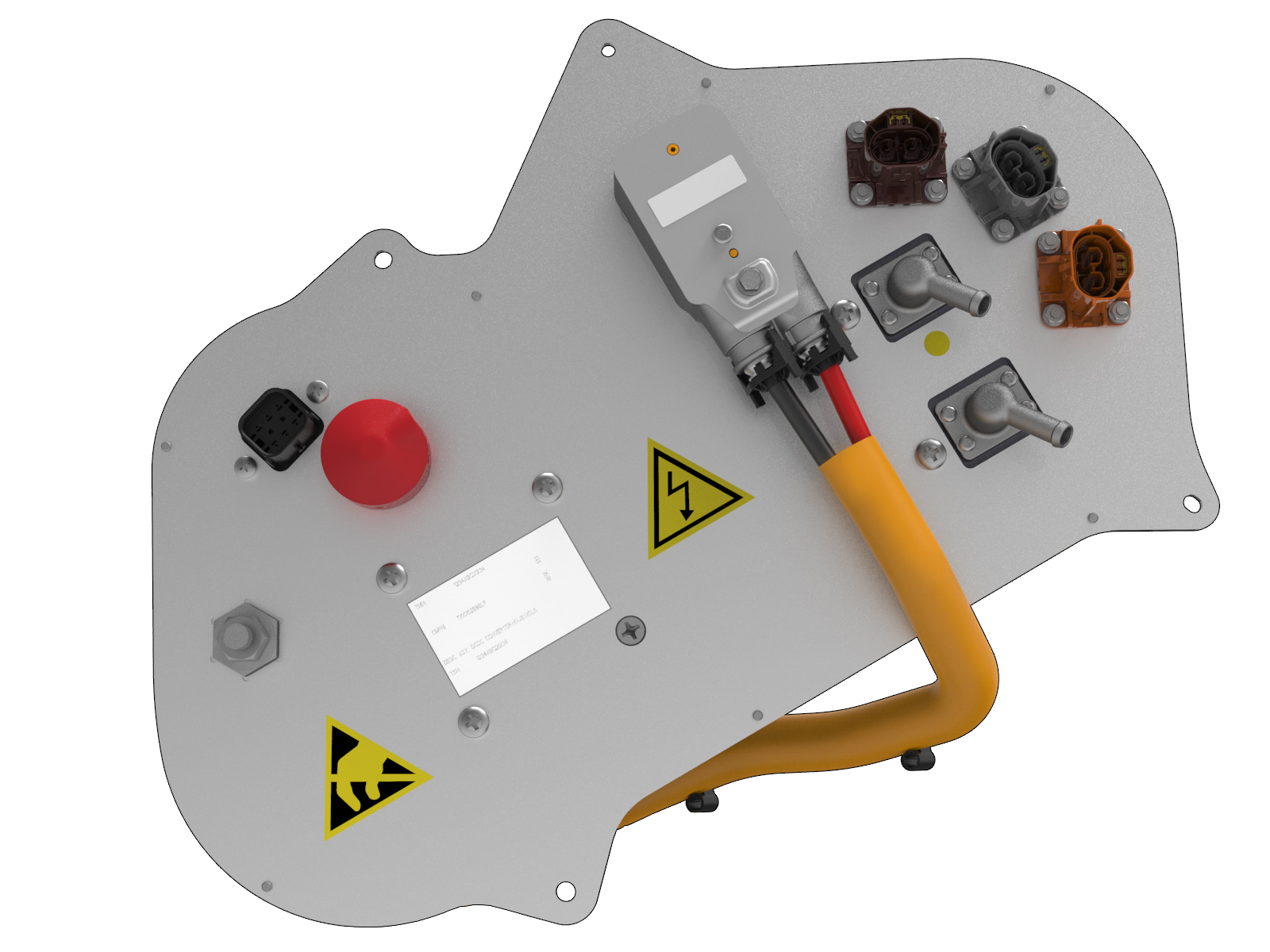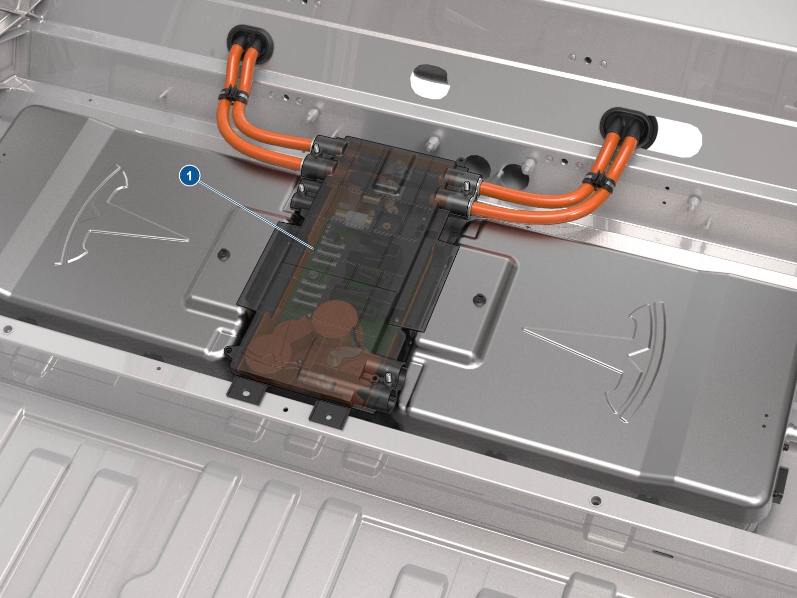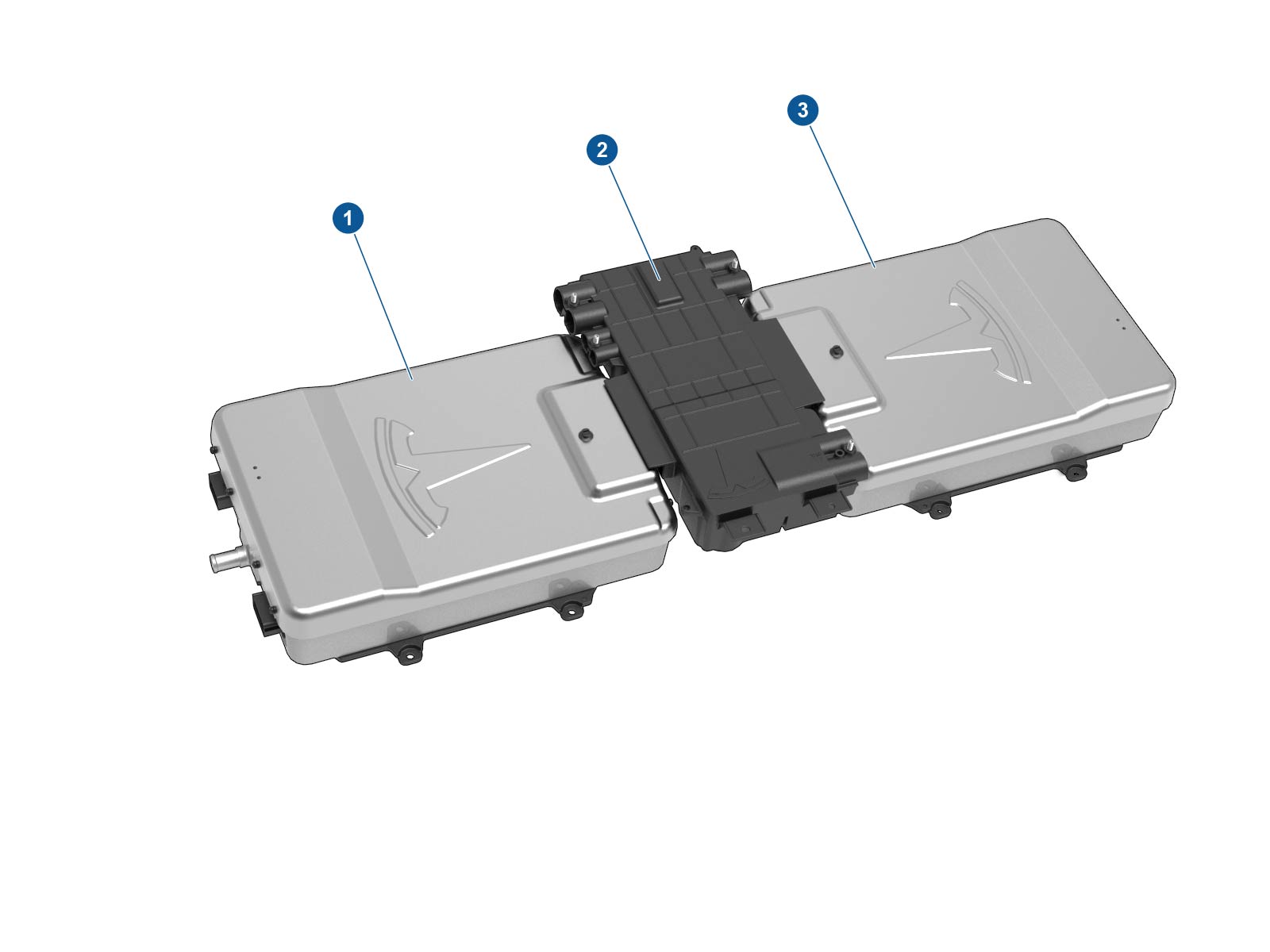 | 1. 10 kW onboard master charger 2. High voltage junction box 3. 10 kW onboard slave charger (optional) |