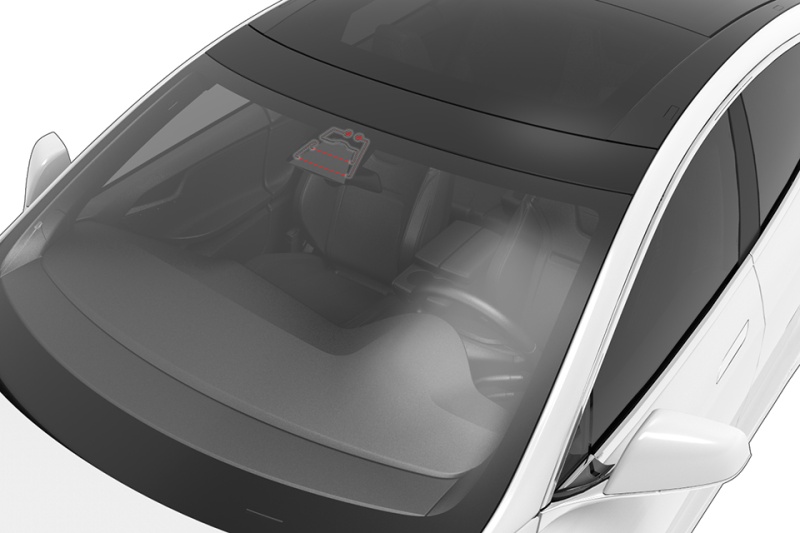 The triple camera assembly is mounted on the front windshield and consists of the main, narrow, and fisheye camera. Using three different focal lengths gives the system both a wide and deep field of view. This wide field of view allows for detecting objects and environments when planning an appropriate vehicle trajectory or vehicle action. These cameras must be precisely aligned and calibrated. Power to the cameras, control of the cameras, and image data from the cameras is provided through the coaxial wiring connected to the Driver Assistance ECU.