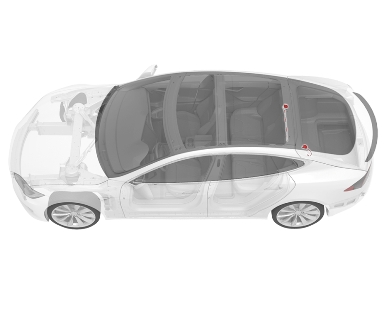| Driver Assistance ECU Location (Left-Hand Drive Model X Shown, Model S Similar) |