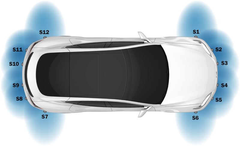 | Ultrasonic sensors | 12 ultrasonic sensors (Bosch) | 12 ultrasonic sensors (Valeo) | 12 ultrasonic sensors (Valeo) |
