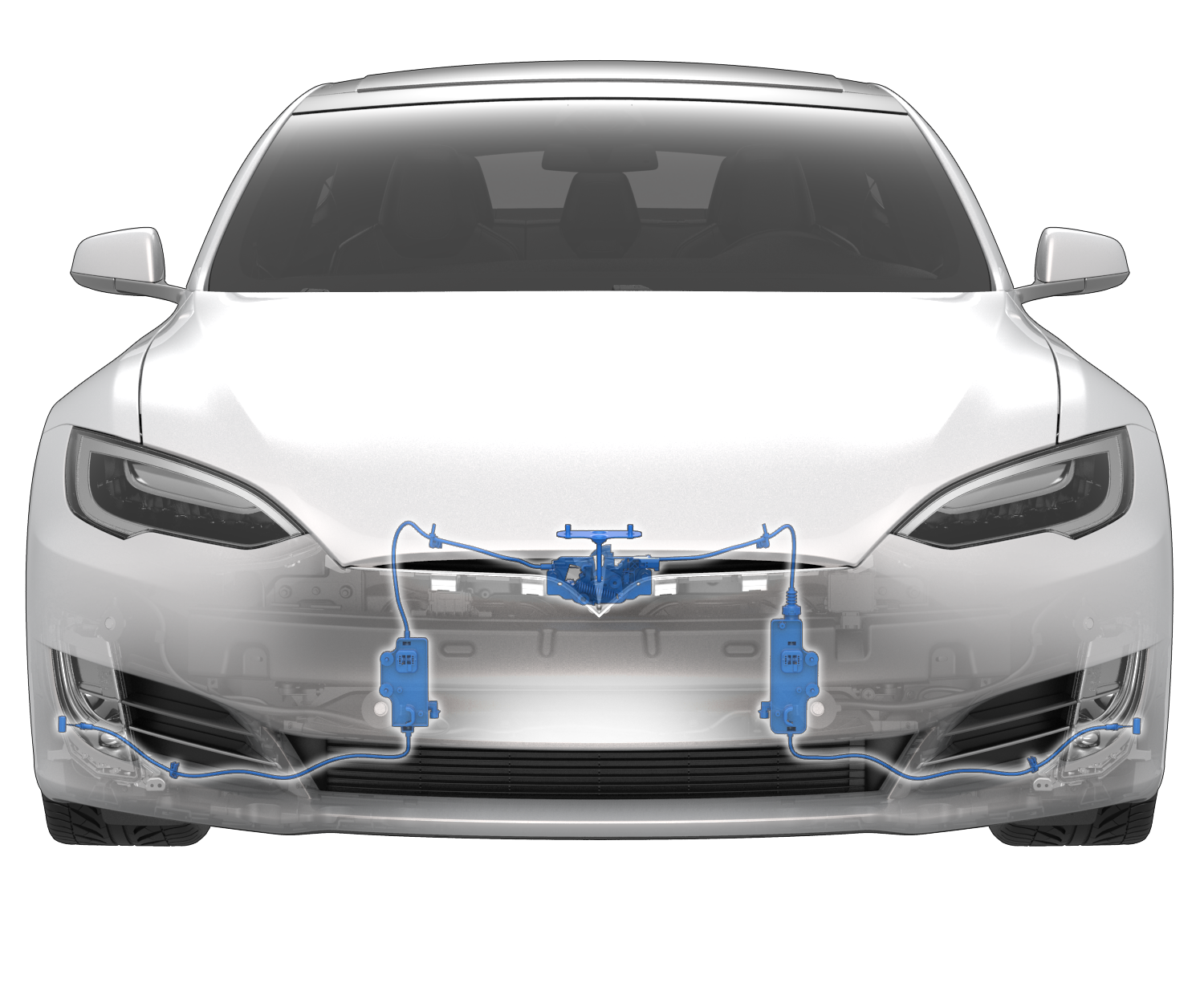 The release actuators are simple motors pulling on a release cable to open the hood when commanded to. There are two release actuators and release cables, one for each latch mechanism (primary and secondary).