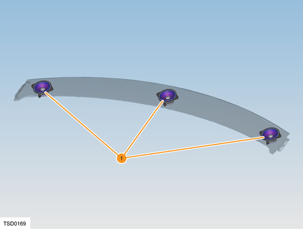 There are two tweeters, one in each ‘A’ post, on both base and premium systems. Their precise positioning is controlled by guide pins. They are secured to the ‘A’ post trim by clips. The tweeters are 30 mm in diameter, with an output of 20 watts, and an impedance of 4 ohms.