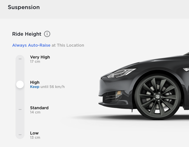 Tesla Air Suspension ECU uses ride height sensors to learn the distance to end of travel as the vehicle drives and encounters bumps and dips. Learned end stops are reset when Ride height calibration is performed. As the damper approaches the end of travel, damper current is increased to make the damper stiffer and to soften the impact of bottoming or topping out.