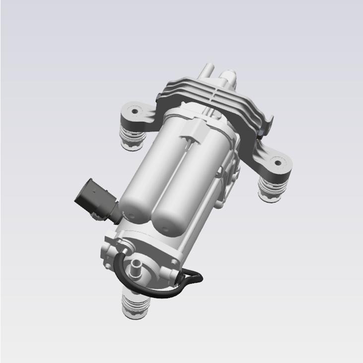 The air compressor introduces pressurized air into the system, filling the reservoir and air springs as needed. The compressor works in two compression stages: