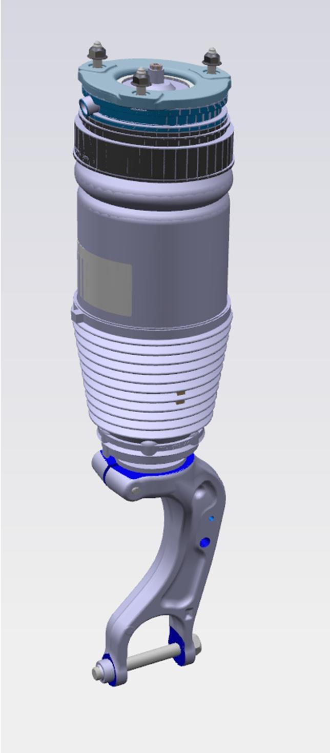 At each corner of the vehicle, there is an air spring. The air spring replaces the coil spring, supporting the load of the vehicle, while also allowing for an adjustable of ride height