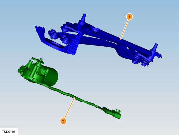 | 1. Wiper linkage 2. Wiper motor |