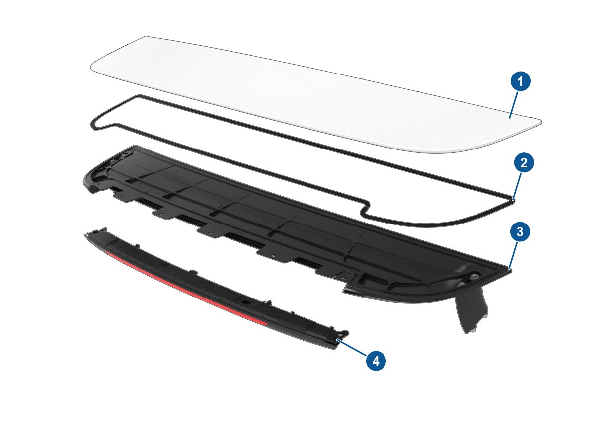 | 1. Active spoiler applique 2. Urethane 3. Active spoiler (stanchions shown) 4. CHMSL |