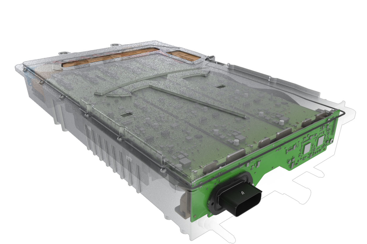 The onboard charger converts AC power from the electric utility grid into DC power to charge the battery pack. The charger closely monitors the charging process and voltage characteristics of the electric grid to quickly and safely provide energy to the battery as requested by the user.