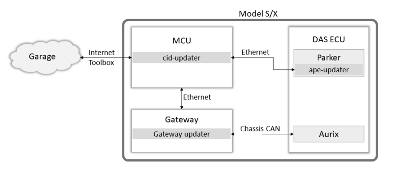 In firmware, Parker is referred to as Autopilot ECU (APE) or Autopilot Primary (APP) .