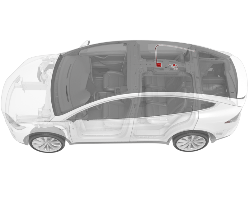| Driver Assistance ECU Location (Left-Hand Drive Model X Shown, Model S Similar) |
