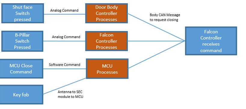 Each of these actuations is processed by a controller to recognize the request. The corresponding CAN message is then sent on the body CAN bus. Once the message is sent on CAN, the next stage of opening begins.