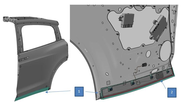 | 1. Rear door cladding assembly 2. Capacitive sensor |